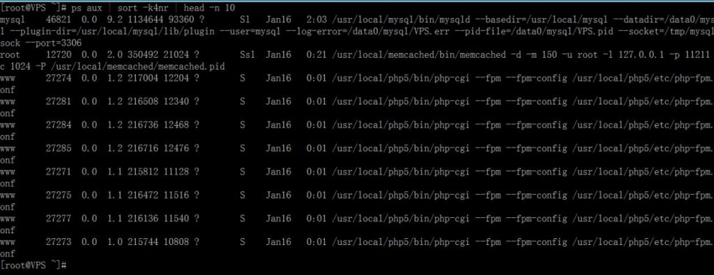 ps -aux |sort -k4nr | head -n 10 |tr -s ' '|cut -d ' ' -f 4,11